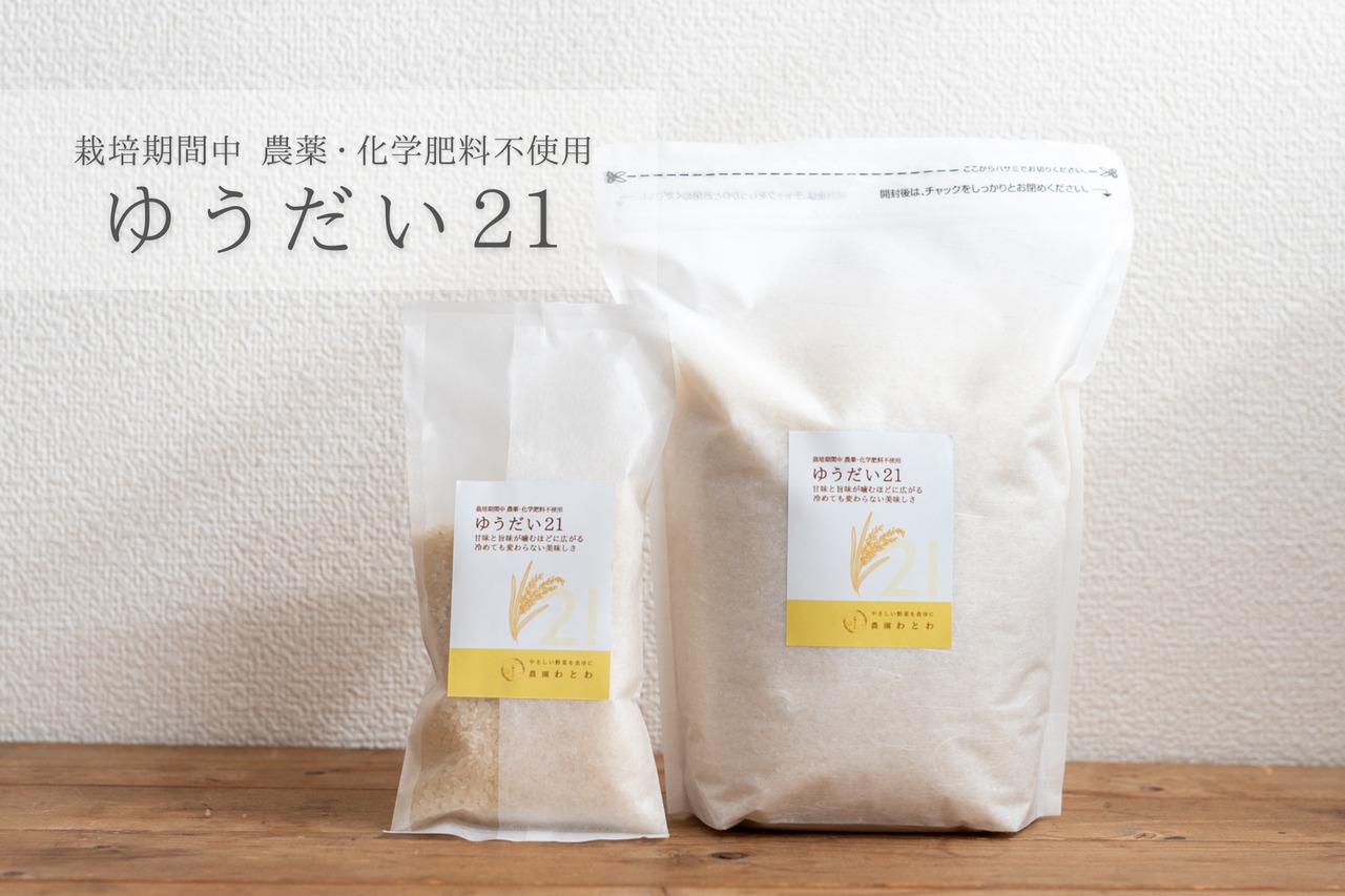 「ゆうだい21」は、甘みとツヤツヤの見た目が美しい、冷めても美味しいお米です。